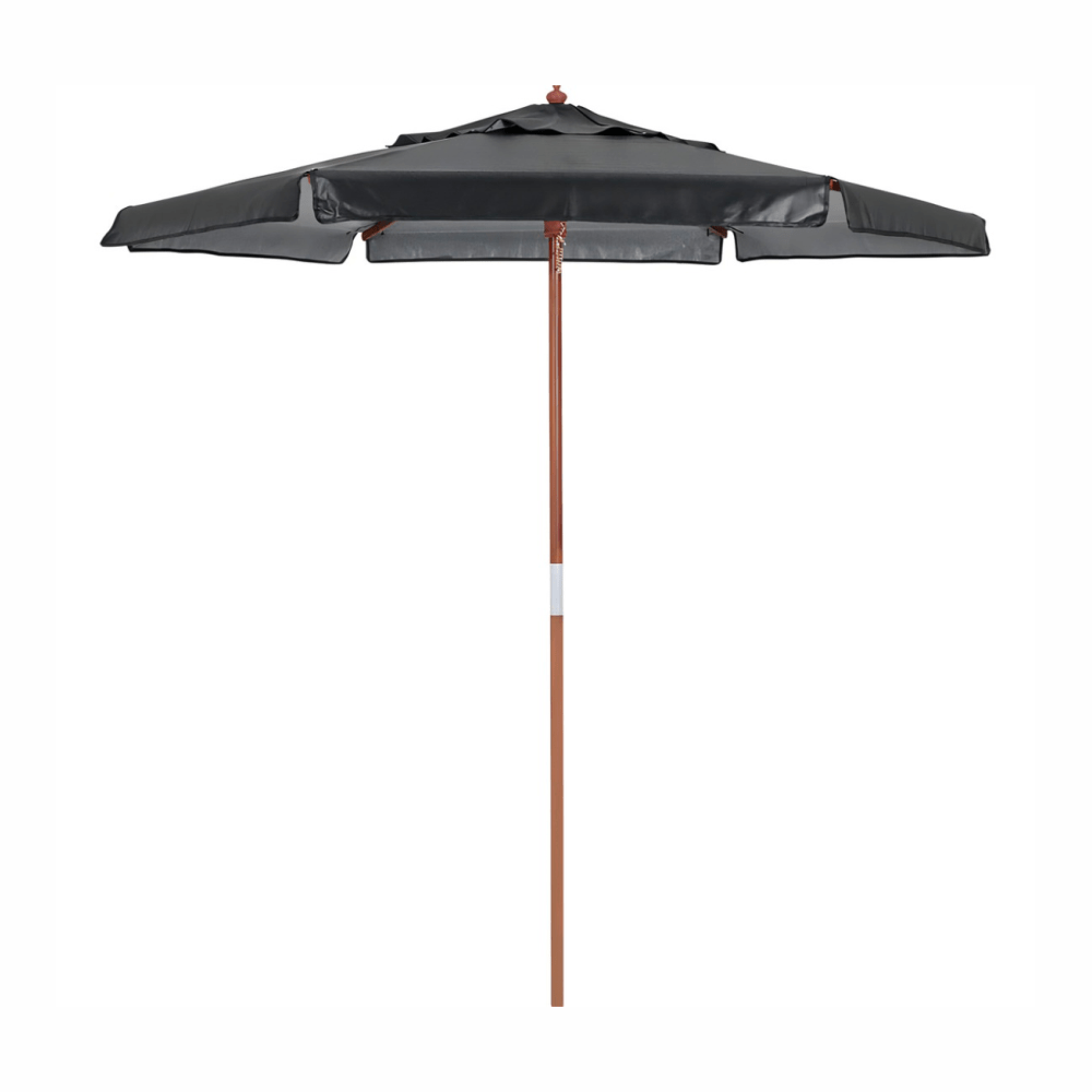 Ombrelone fabricado com lona resistente ao tempo e varetas de aço ou madeira, cabo superior e inferior de 1 polegada (2,54 cm), disponíveis nos tamanhos de 1.60m/2.00m/2,40 metros de diâmetro.